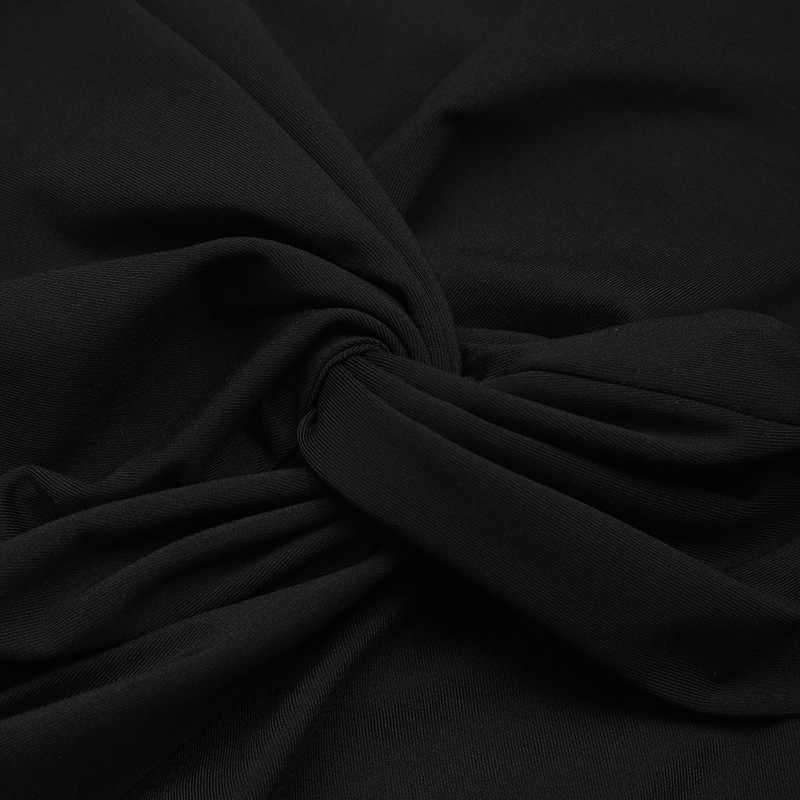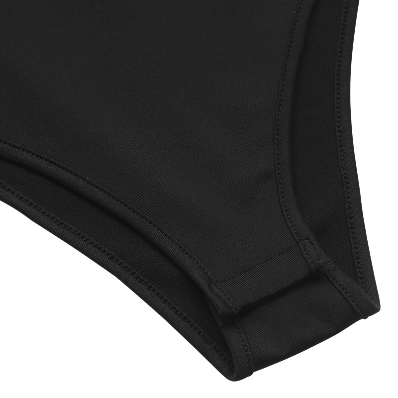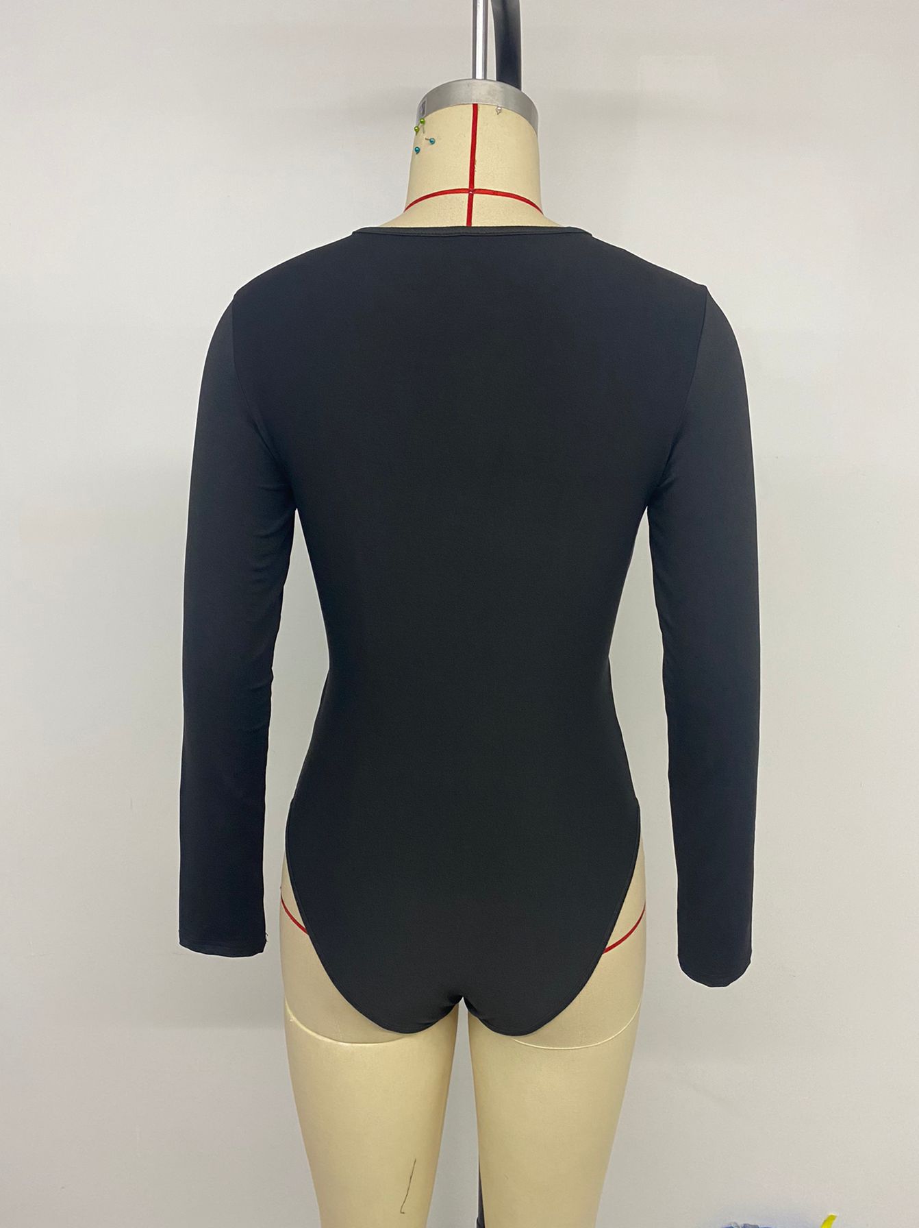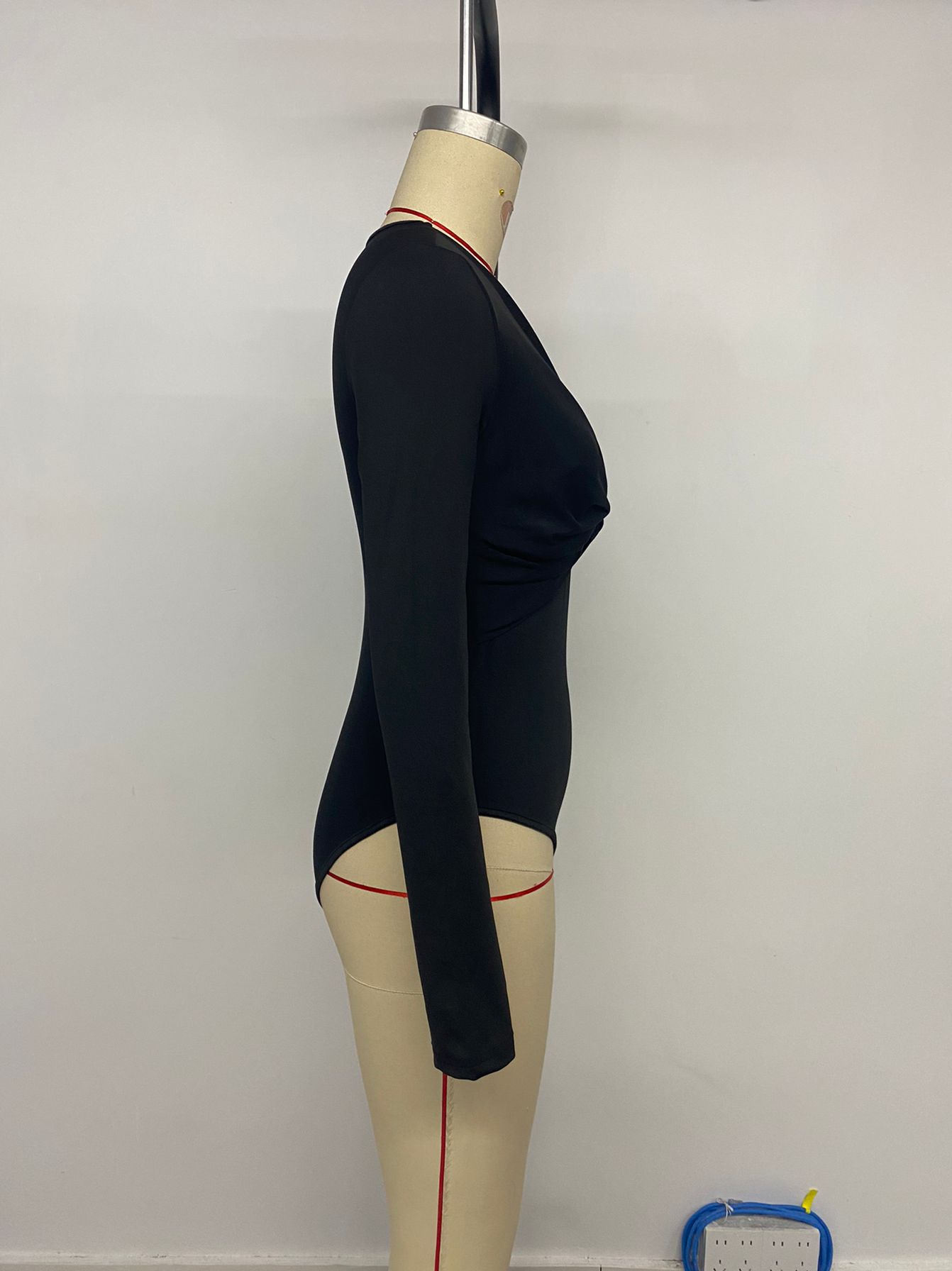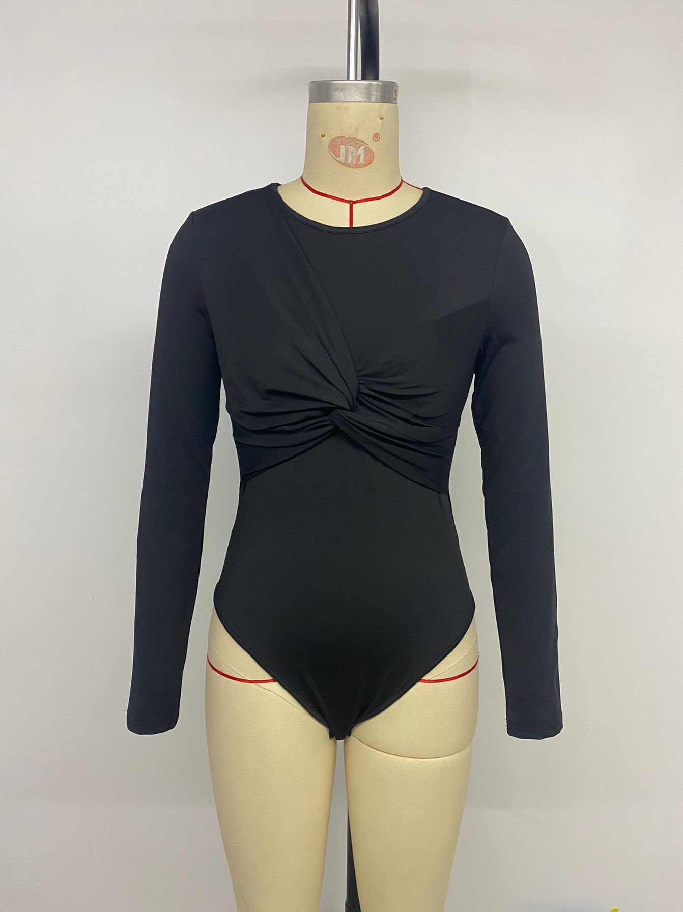 Womens Solid Color Minimalism Black Twist-Collar Bodysuit