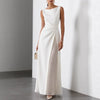 Elegant Casual And Comfortable Long-sleeve Satin Knit Pleated Maxi Dress