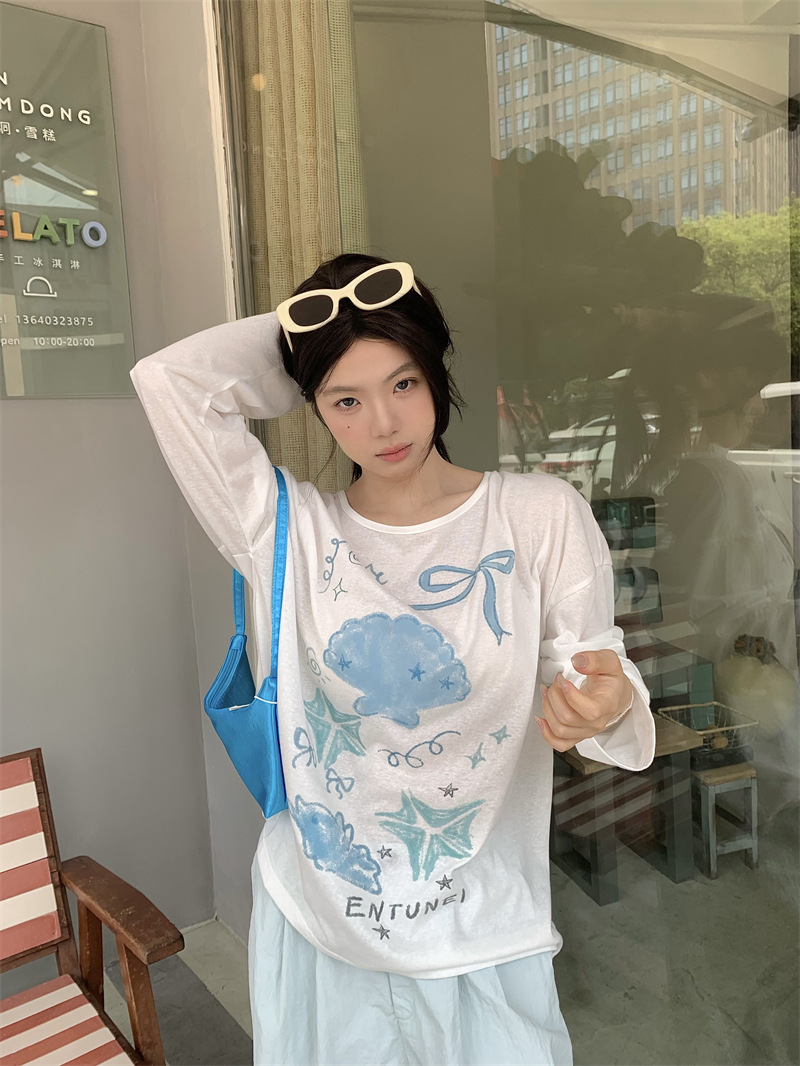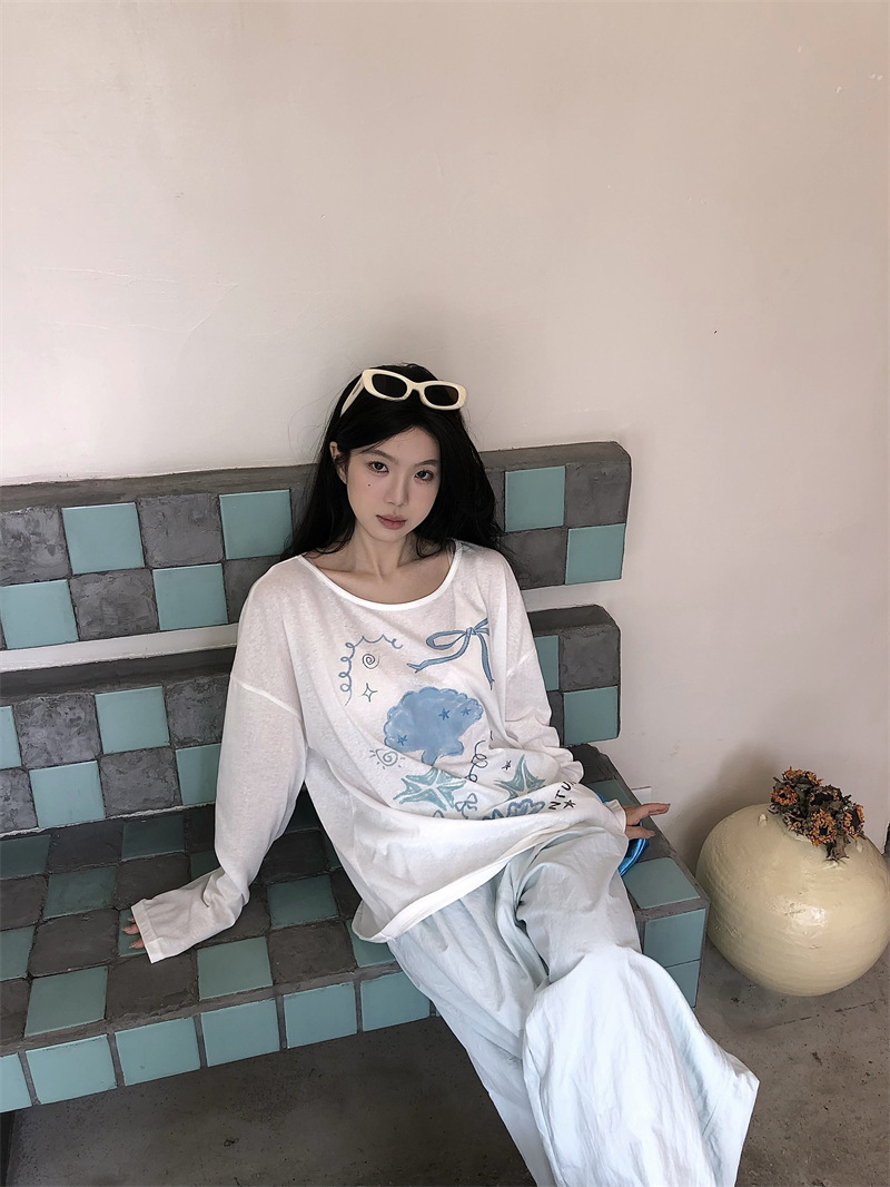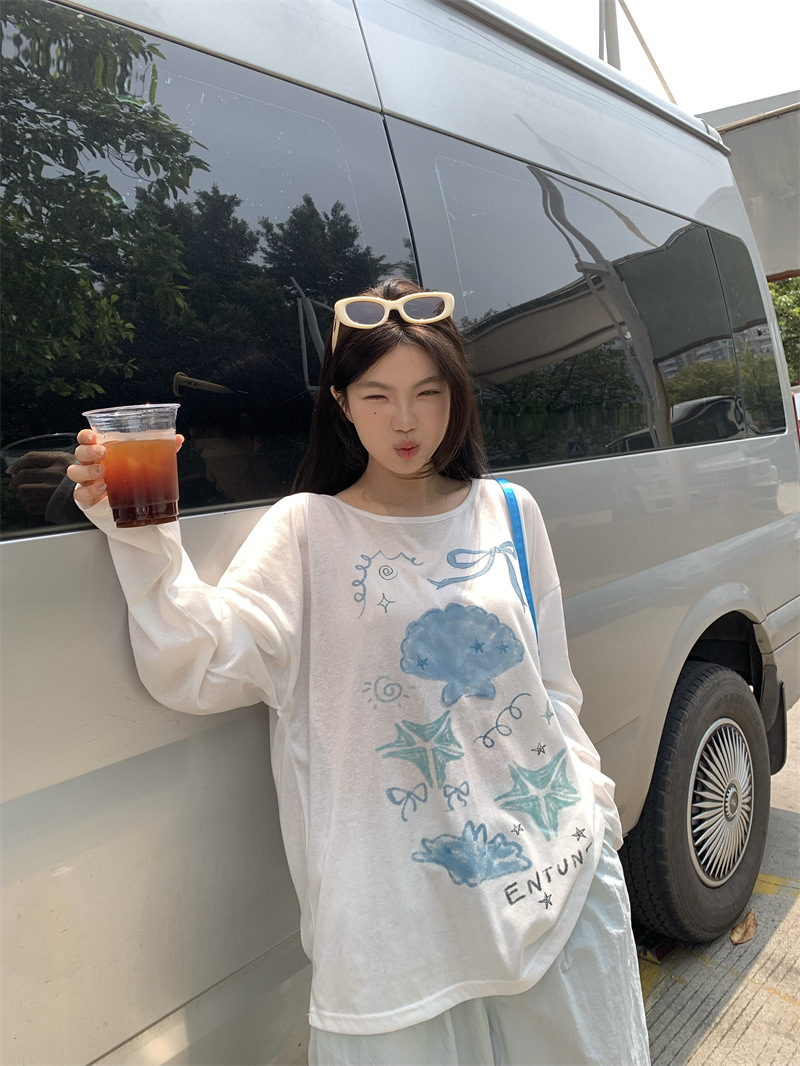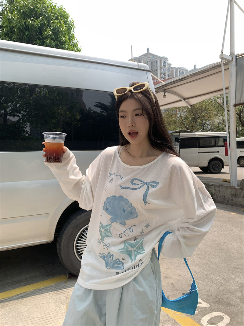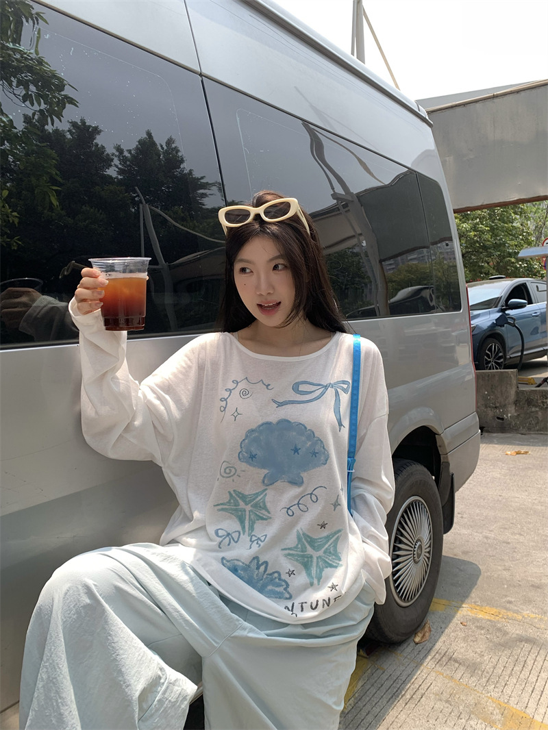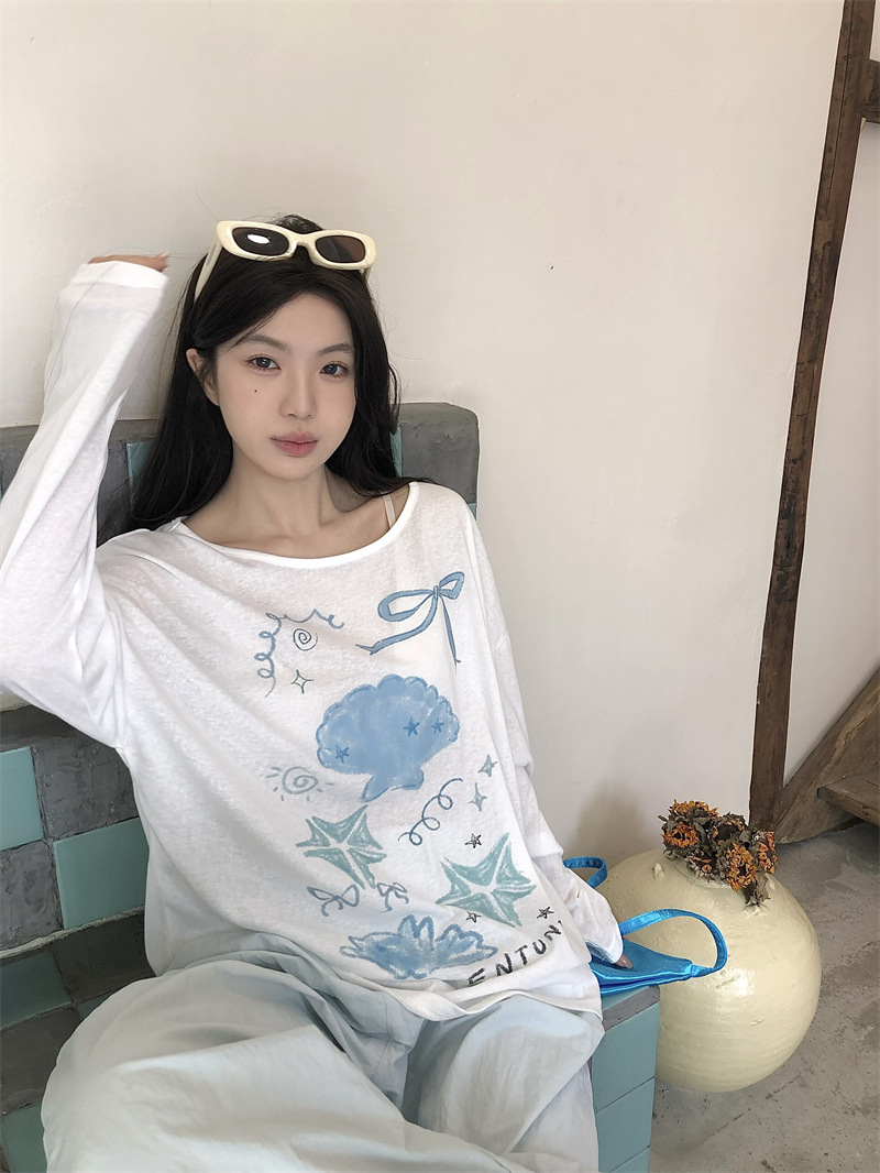 Laid-back Shell And Starfish Print Sun-Protective Cover-Up Top
