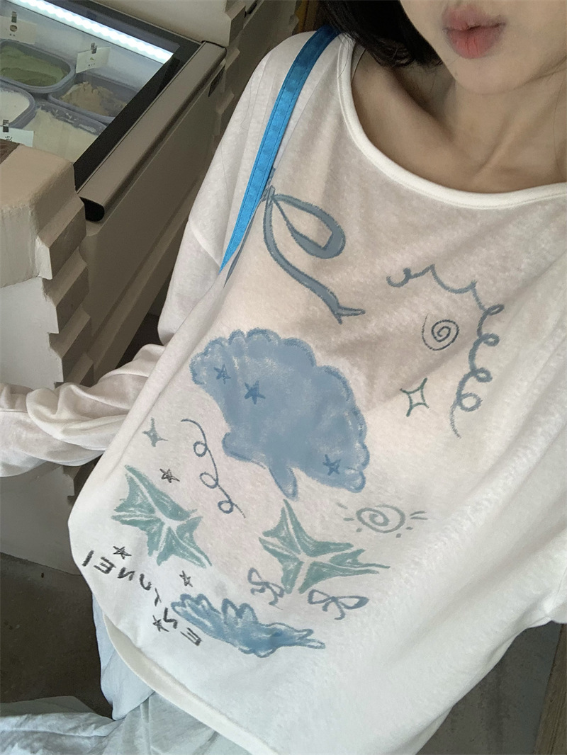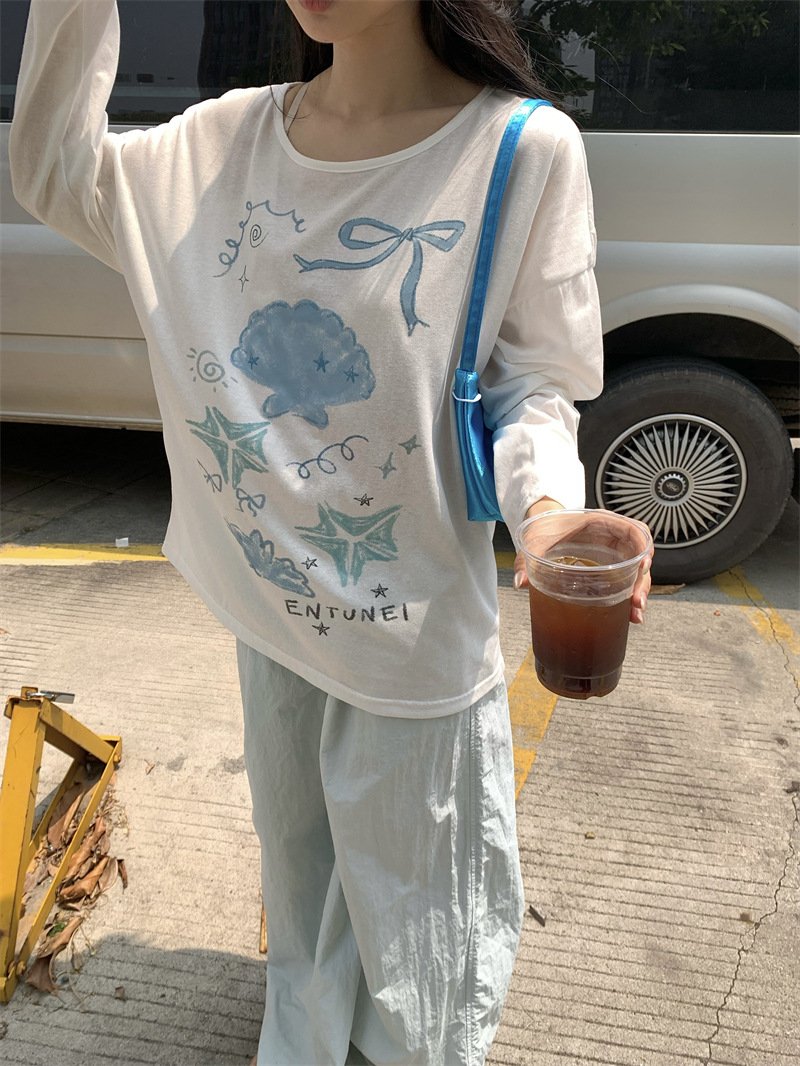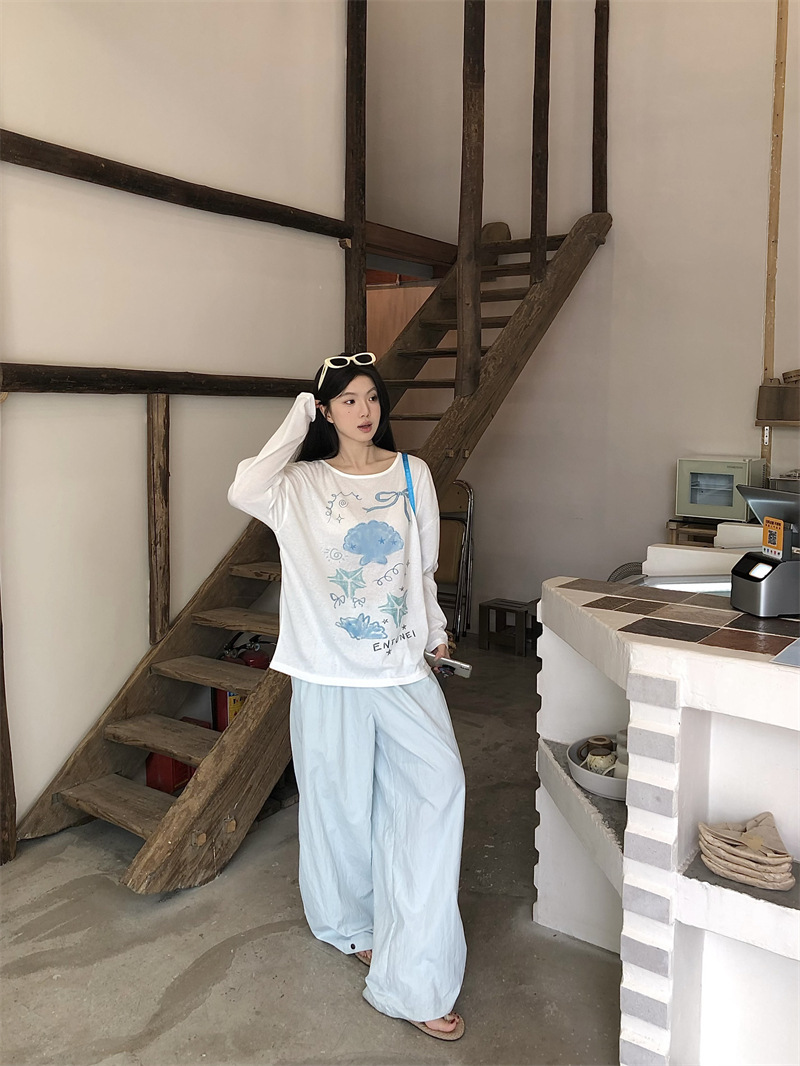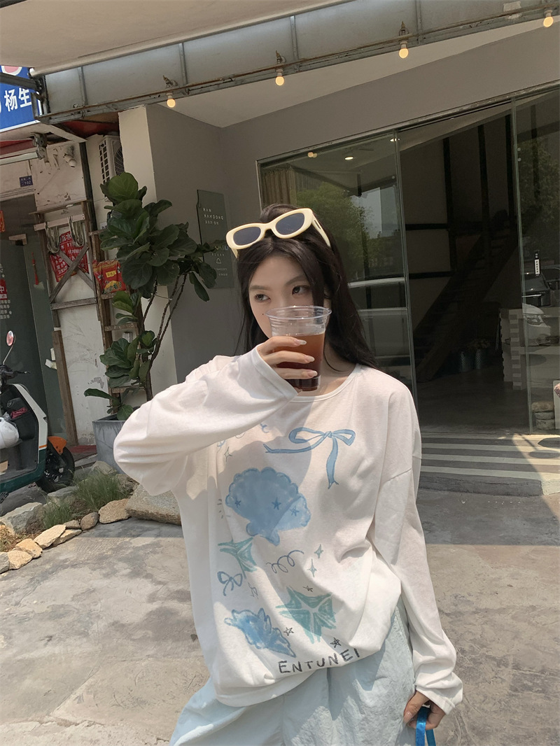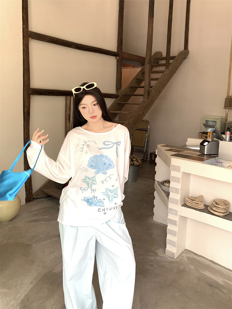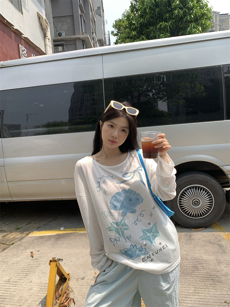 Laid-back Shell And Starfish Print Sun-Protective Cover-Up Top
