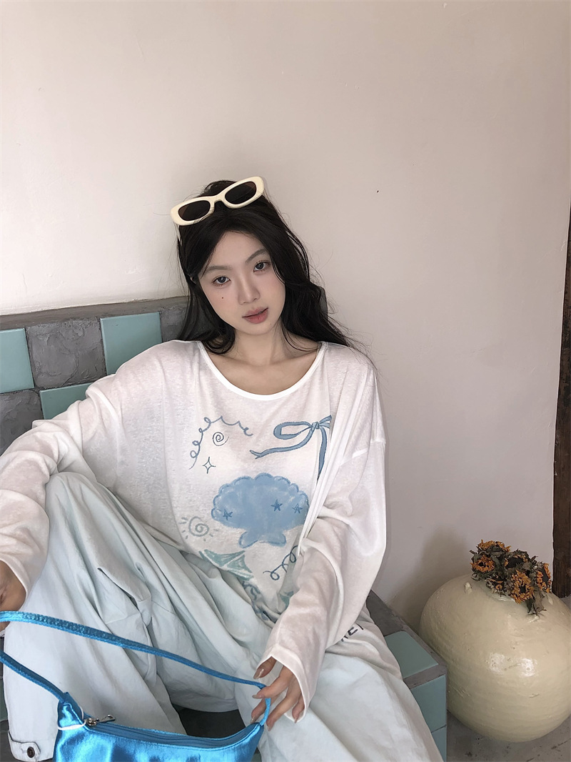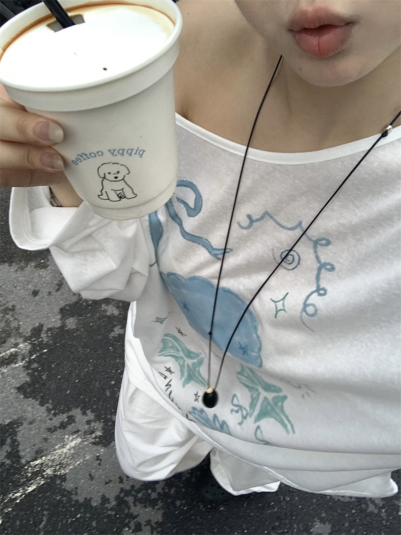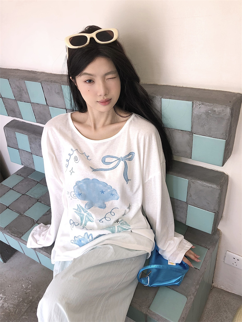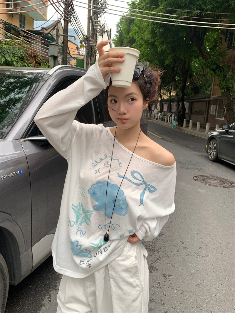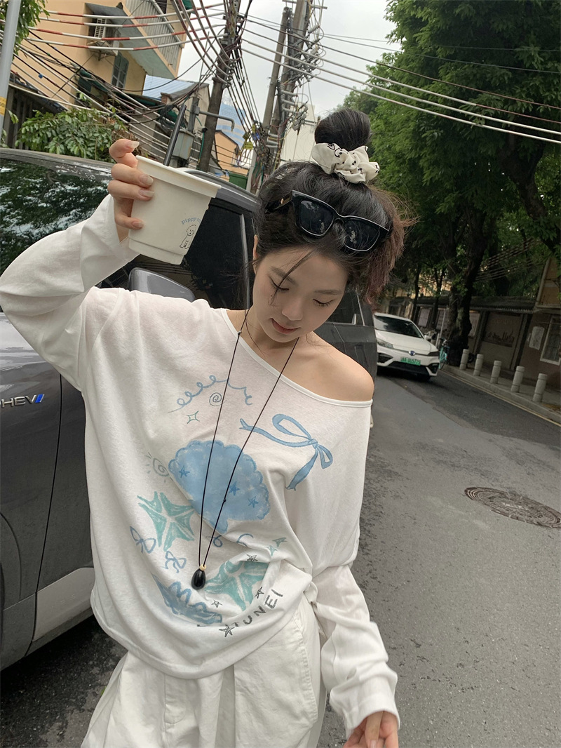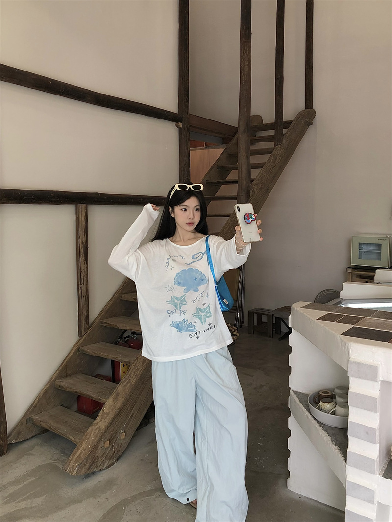 Laid-back Shell And Starfish Print Sun-Protective Cover-Up Top