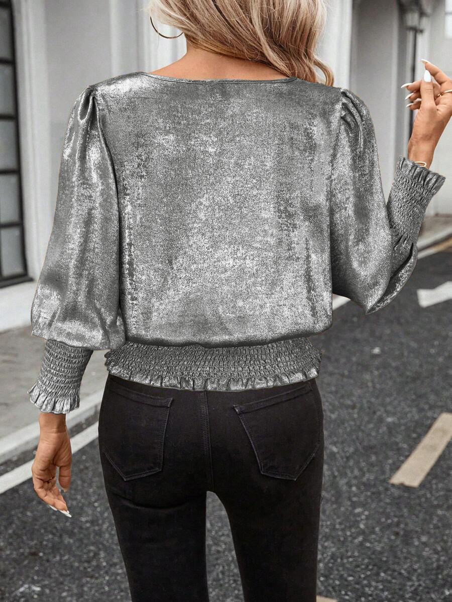 Round-neck Gold-stamped Elasticized Mid-sleeve Pullover Shirt