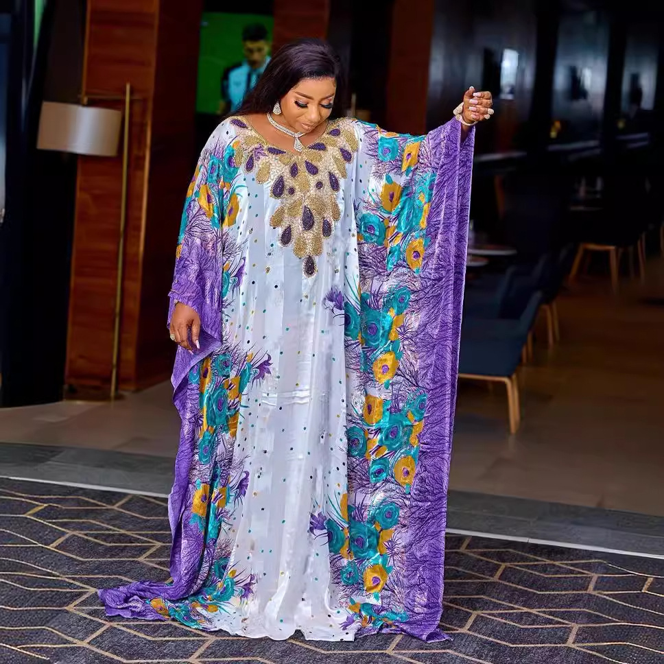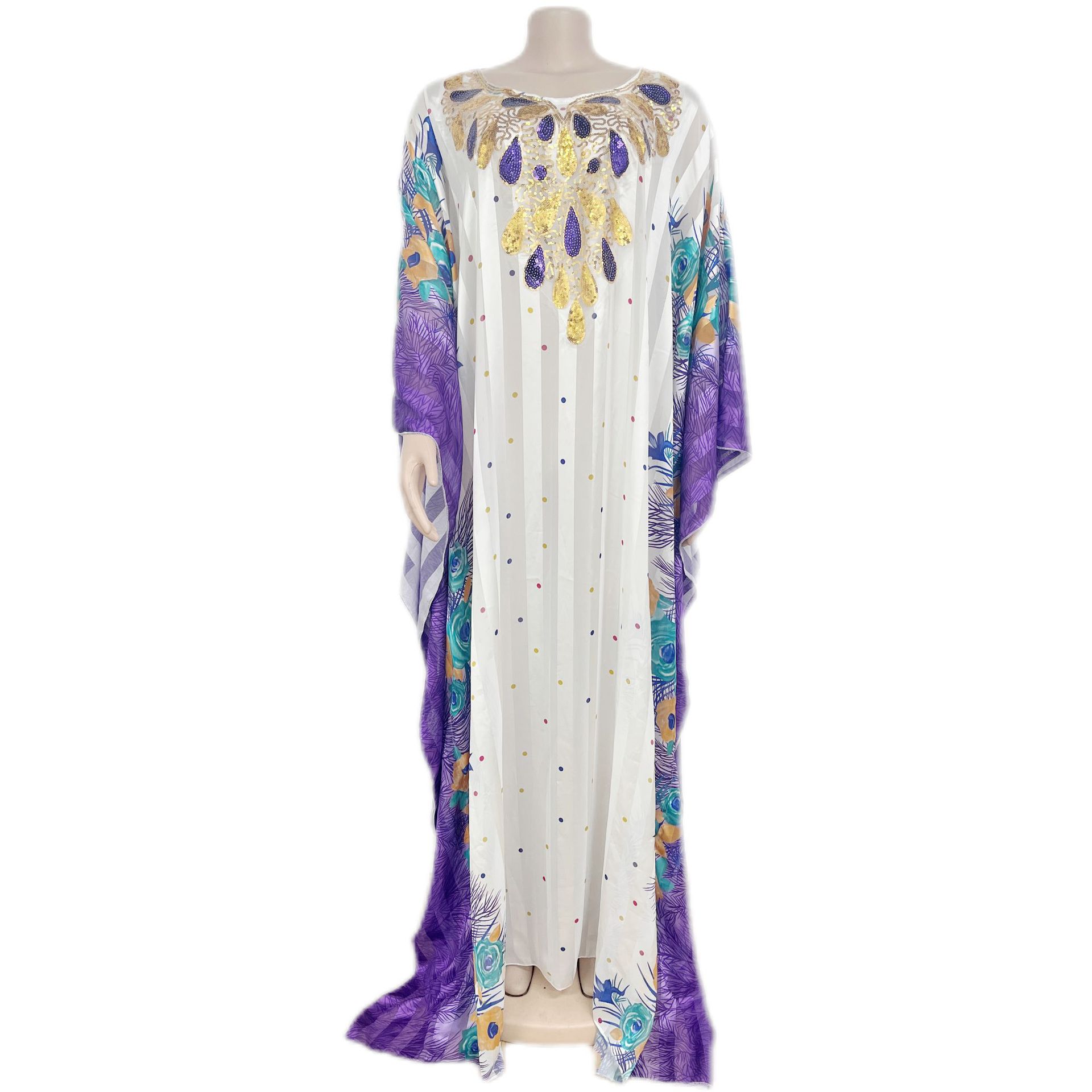 Middle East Sequined Printed Chiffon Loose Robe For Women